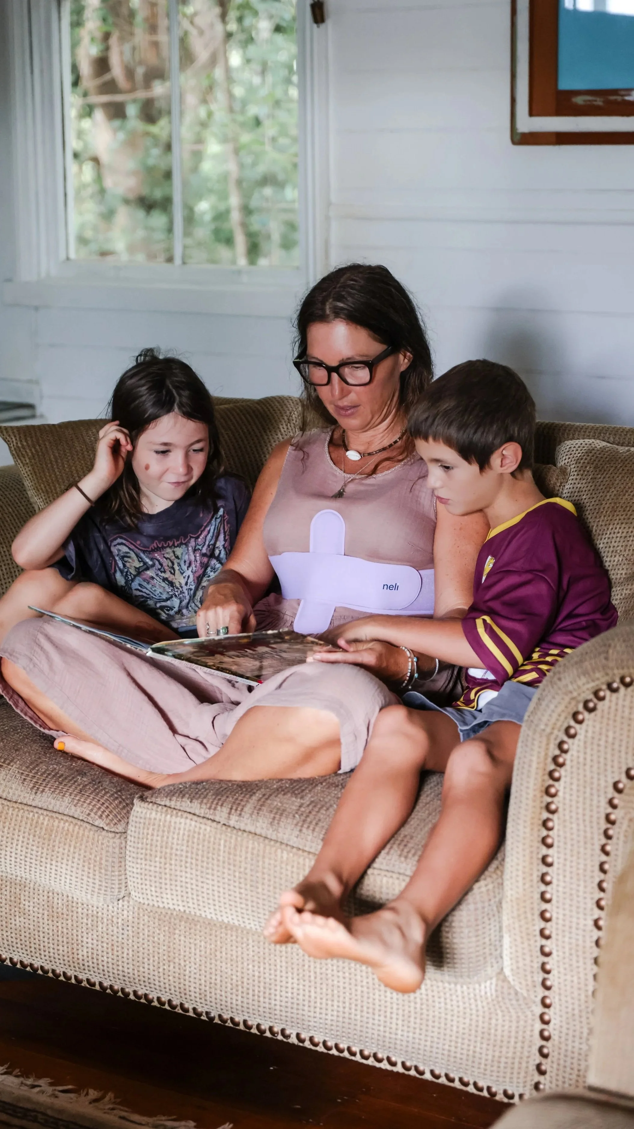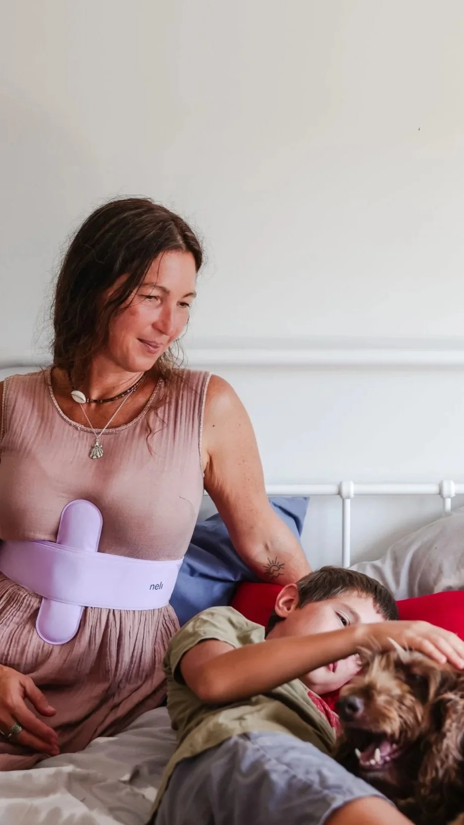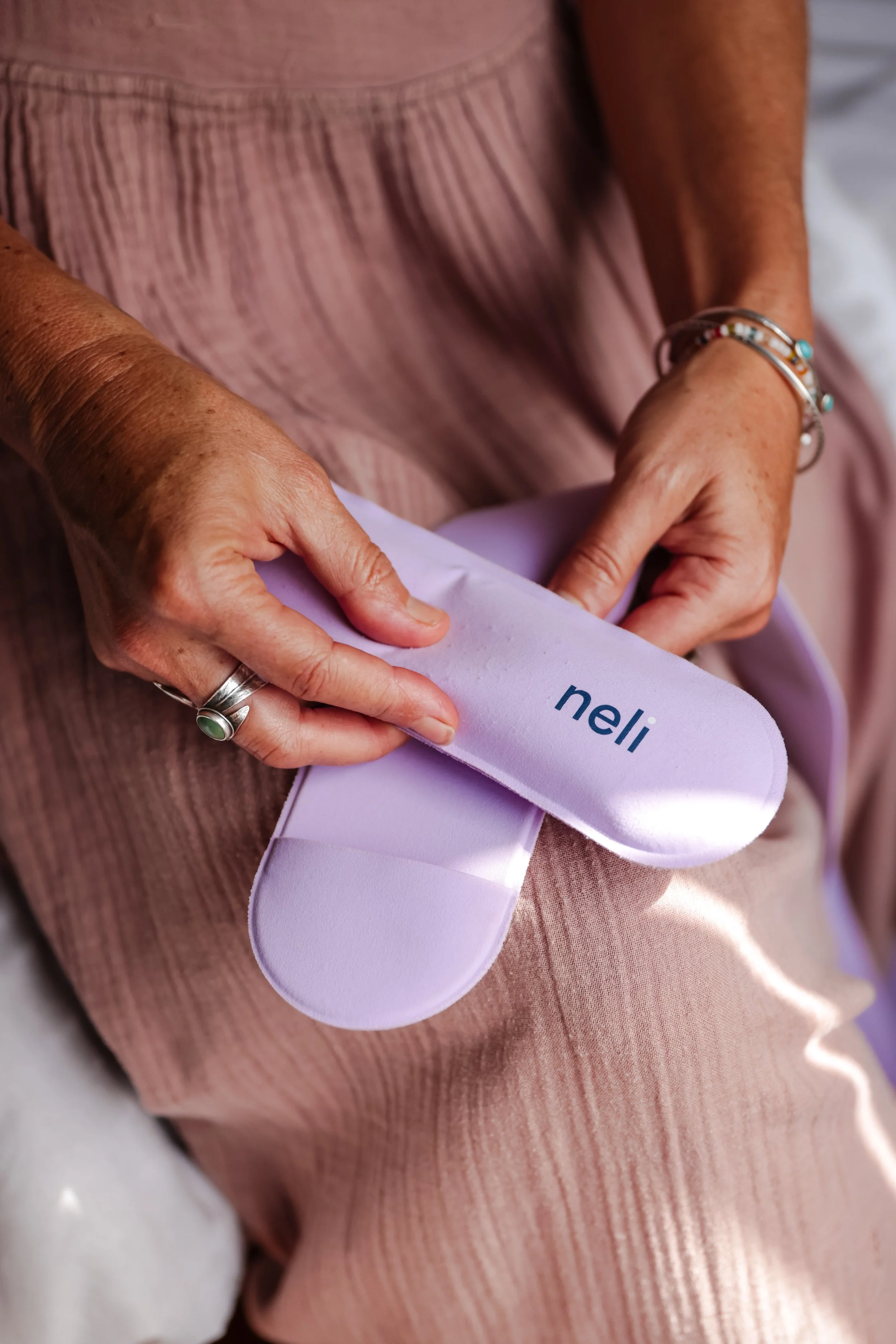 Place neli comfortably around your chest or on your body, wherever it feels most natural for you.